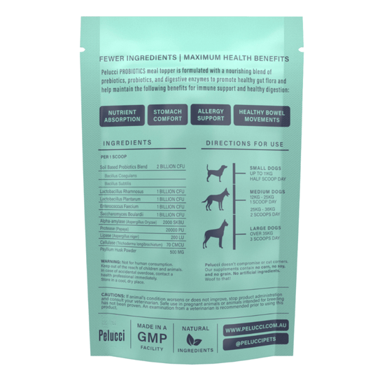 "Alfie as you can see in the photo loves his Pelucci Probiotic. It has been beneficial for his overall gut health resulting in much less scratching and paw licking. Excellent product!"